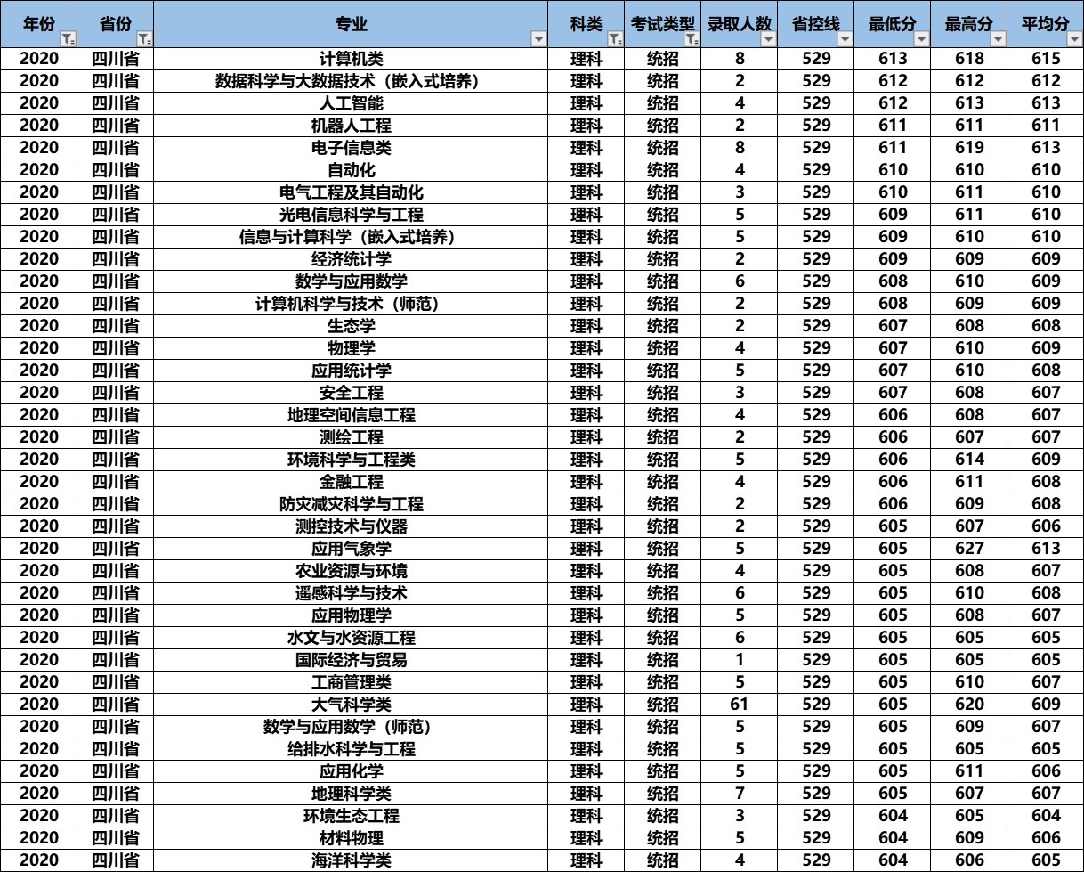 21、南京信息工程大学四川省2020年理科专业录取数据: